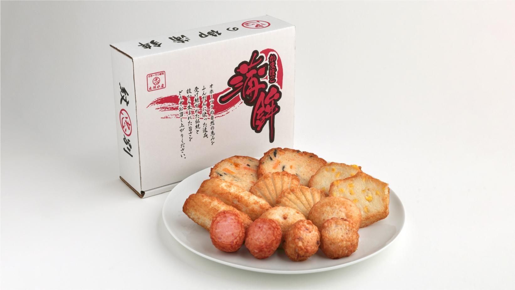 たこと紅ショウガが入ったたこ焼き風の揚げかまぼこです。”たこ焼き”と同じ組み合わせの具材を用いて、すり身でまとめることにより、”たこ焼き風味”の揚げかまぼこに仕上げています。